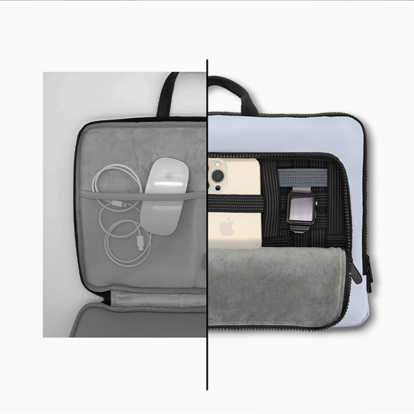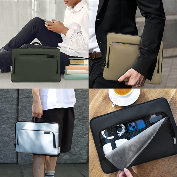 The hideable handle allows you to switch between a laptop briefcase handbag and a laptop sleeve bag.