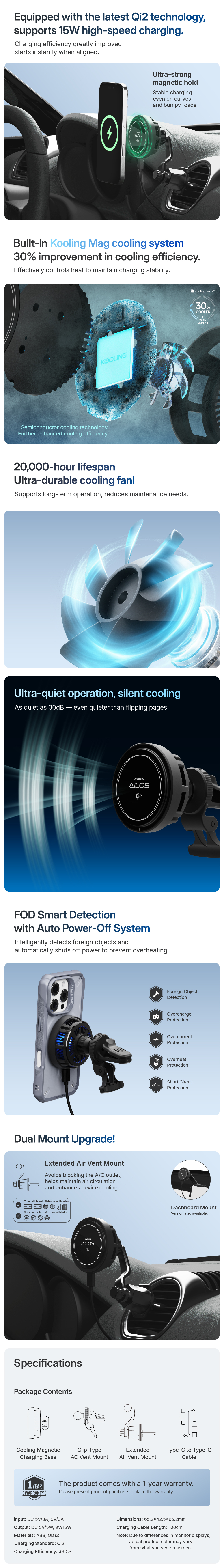 "1. The latest Qi2 technology supports high-speed charging up to 15W.