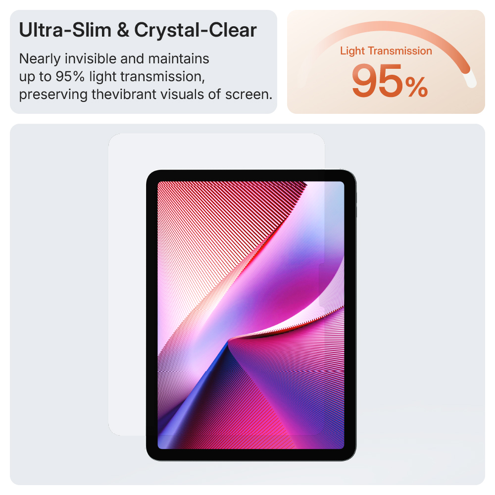 Nearly invisible and maintains up to 95% light transmission, preserving the vibrant visuals of screen.