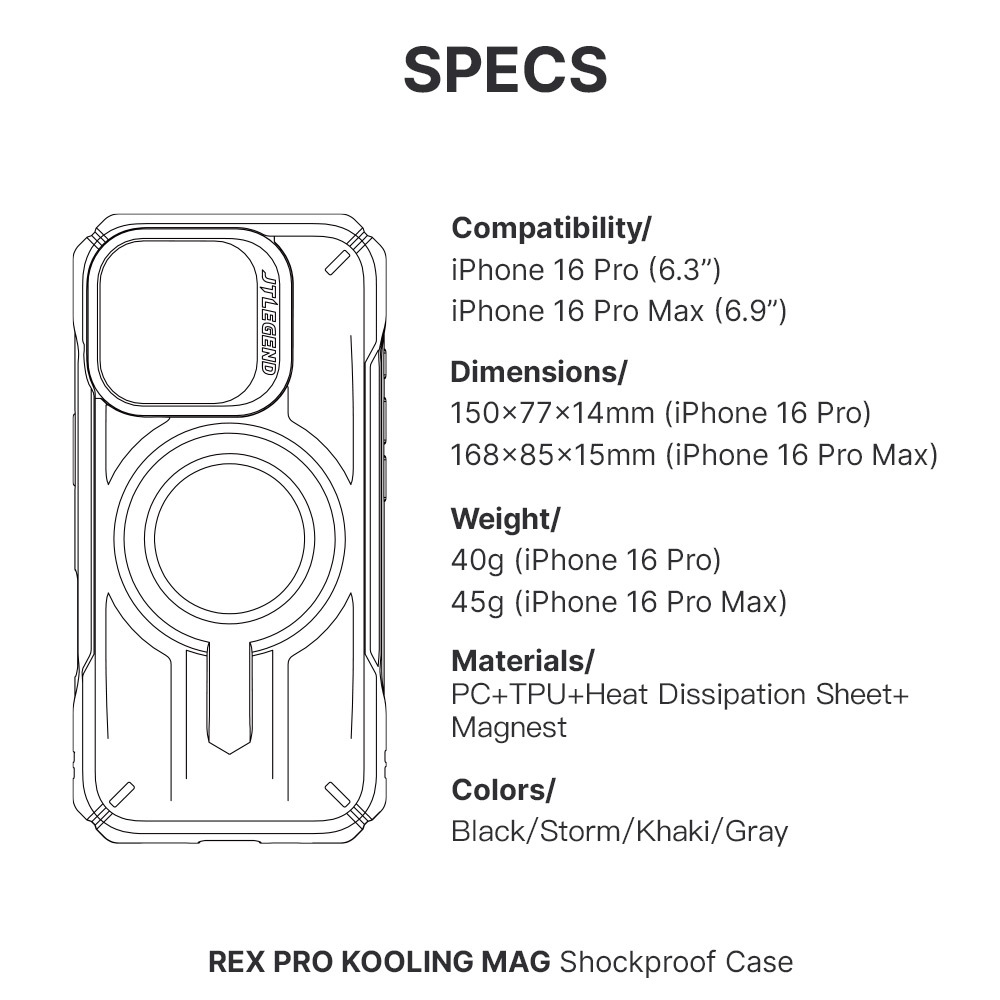 JTLEGEND iPhone 16 Pro Max (6.9") REX Pro Kooling Mag Shockproof Case - Black
