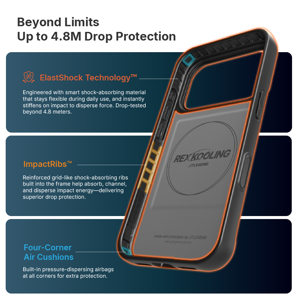 | ElastShock Technology™: Engineered with smart shock-absorbing material that stays flexible during daily use, and instantly stiffens on impact to disperse force. Drop-tested beyond 6 meters.