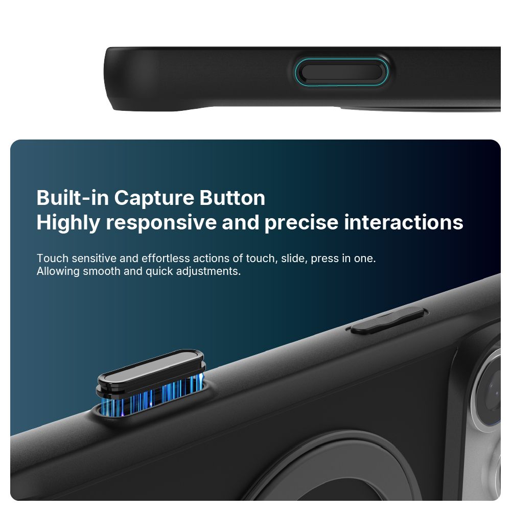 | Camera Control: Integrated conductive layer glass camera control button to easy sliding motion.