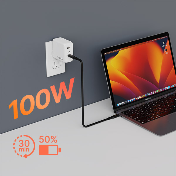 A dedicated laptop charging port, supporting up to 100W, with a minimum of 65W.