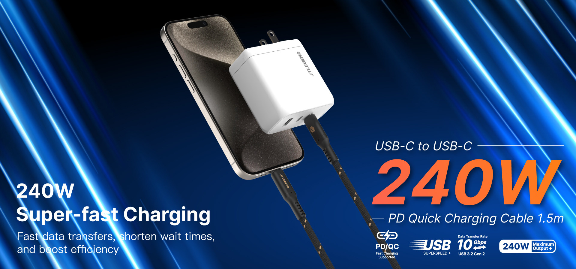 Max output 240W(48V/5A), PD(iOS)/QC(Android), Type-C to Type-C, USB 3.2 Gen 2, USB-IF standards